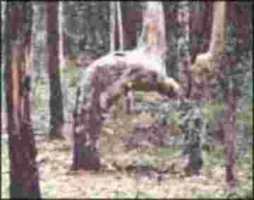As you can see, the bottom half of the tree trunk is bowed in such a way that it resembles a person in a posture of Islamic prayer called "Ruku".